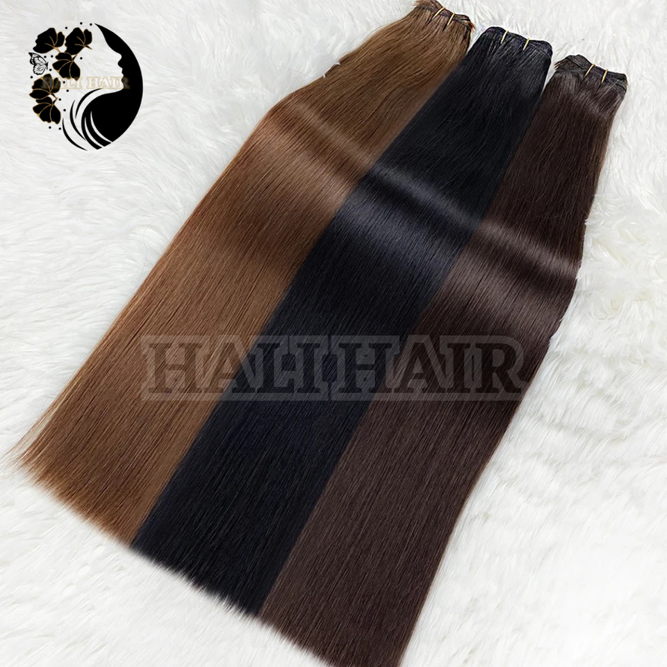 Hali Hair Remy Brazilian Double Cuticle Aligned Super Double Drawn Thick Ends Natural Black Straight Machine Double Weft Soft