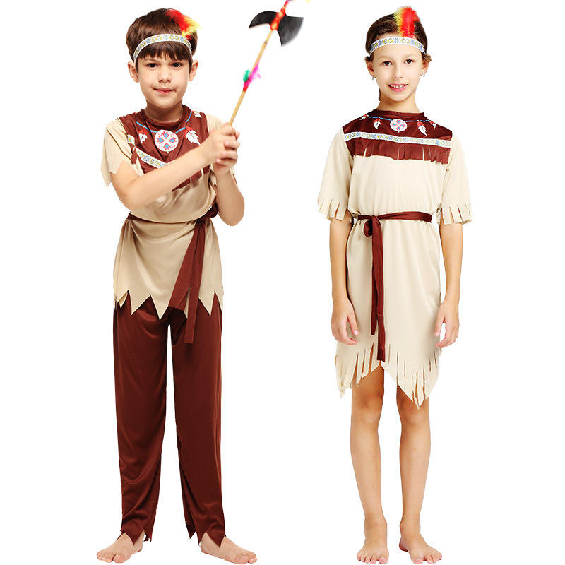 ชุดคอสเพลย์ผู้ใหญ่ชายชาวอินเดียสำหรับฮาโลวีน ชุดพื้นเมืองสำหรับงานแฟนซีและการแสดง
