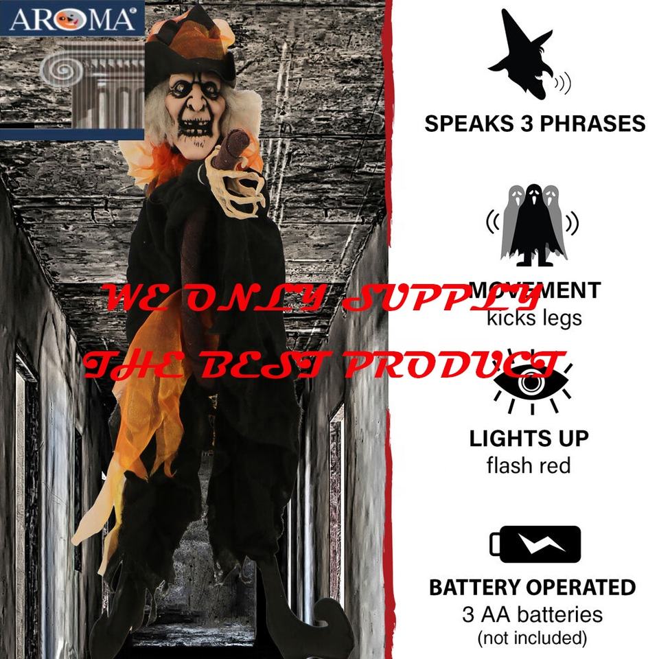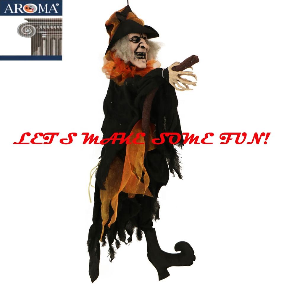 ของตกแต่งปาร์ตี้ฮาโลวีน แม่มดแขวนติดผนังขี่ไม้กวาดเตะขา สำหรับบ้านผีสิง อุปกรณ์ประกอบฉากฮาโลวีน