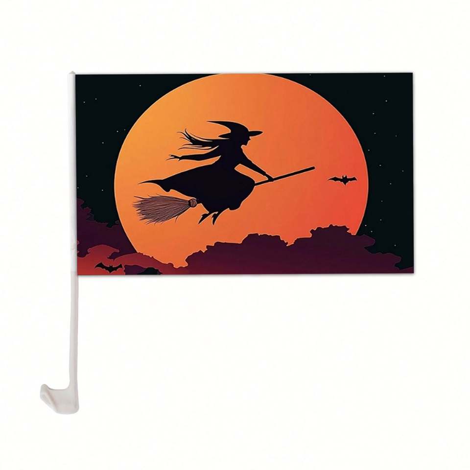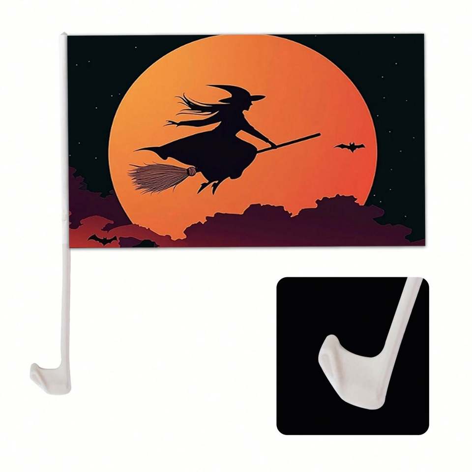 ธงติดรถยนต์วันฮาโลวีน ขนาด 12x18 นิ้ว พร้อมเสาพลาสติกขนาด 45 ซม. อุปกรณ์ตกแต่งสำหรับหน้าต่างรถยนต์