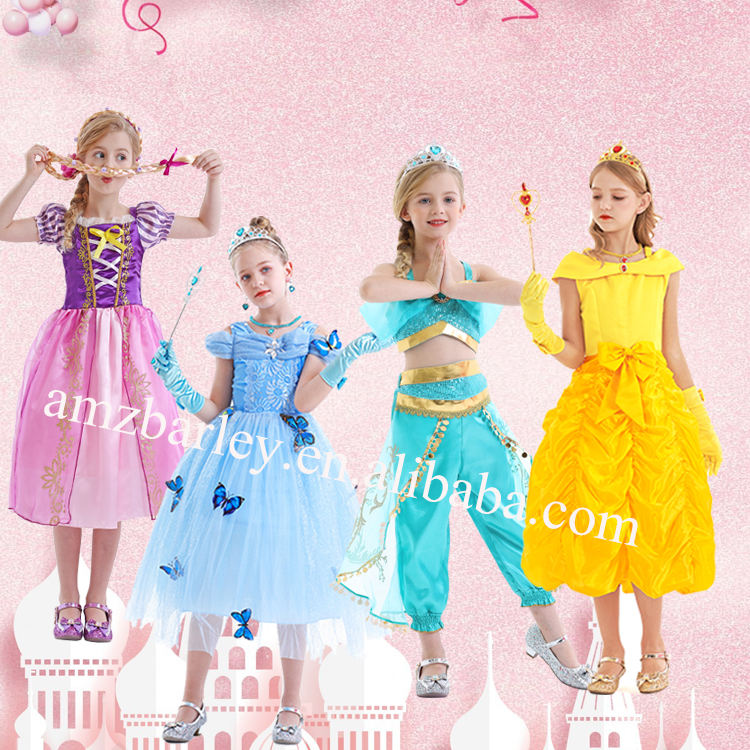 เครื่องแต่งกายคอสเพลย์เจ้าหญิงน้อยเจ้าหญิงน้อยราพันเซลฮาโลวีนเทศกาลคริสต์มาสเอลซ่าอานาราพันเซลเบลล์จัสมินนางเงือกน้อย