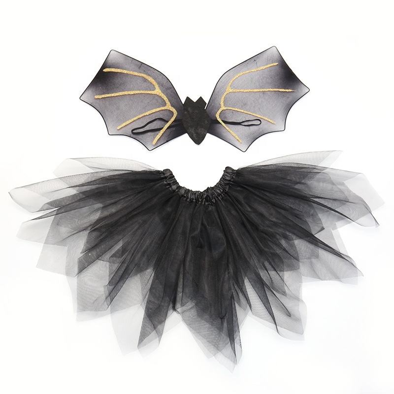 ฮาโลวีน คริสต์มาส ปีกนางฟ้าผีเสื้อ ชุดแต่งหน้าสำหรับเด็ก กระโปรงฟูฟ่อง ชุดปีกค้างคาว 2 ชิ้น สีสันสดใส