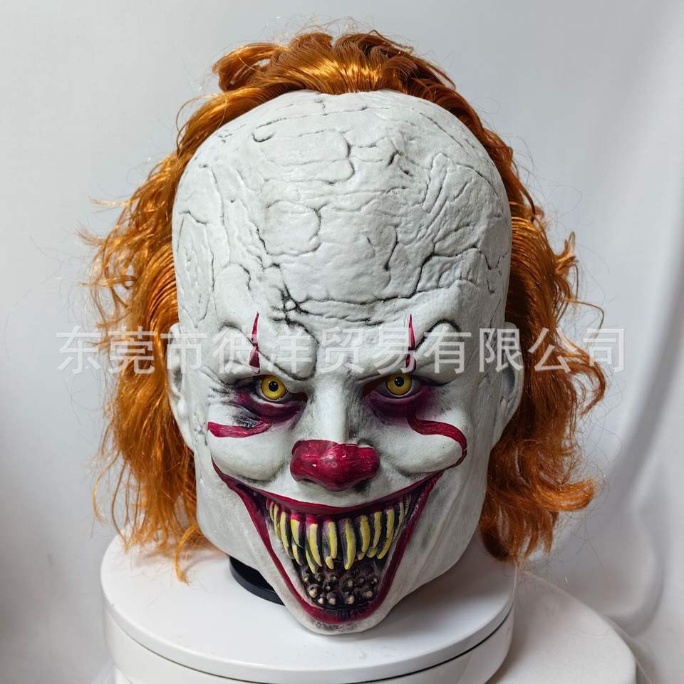 หน้ากากตัวตลกฮาโลวีนพร้อมผมสีแดงเปิดปาก ทำจากยางลาเท็กซ์ สำหรับงานปาร์ตี้คอสเพลย์