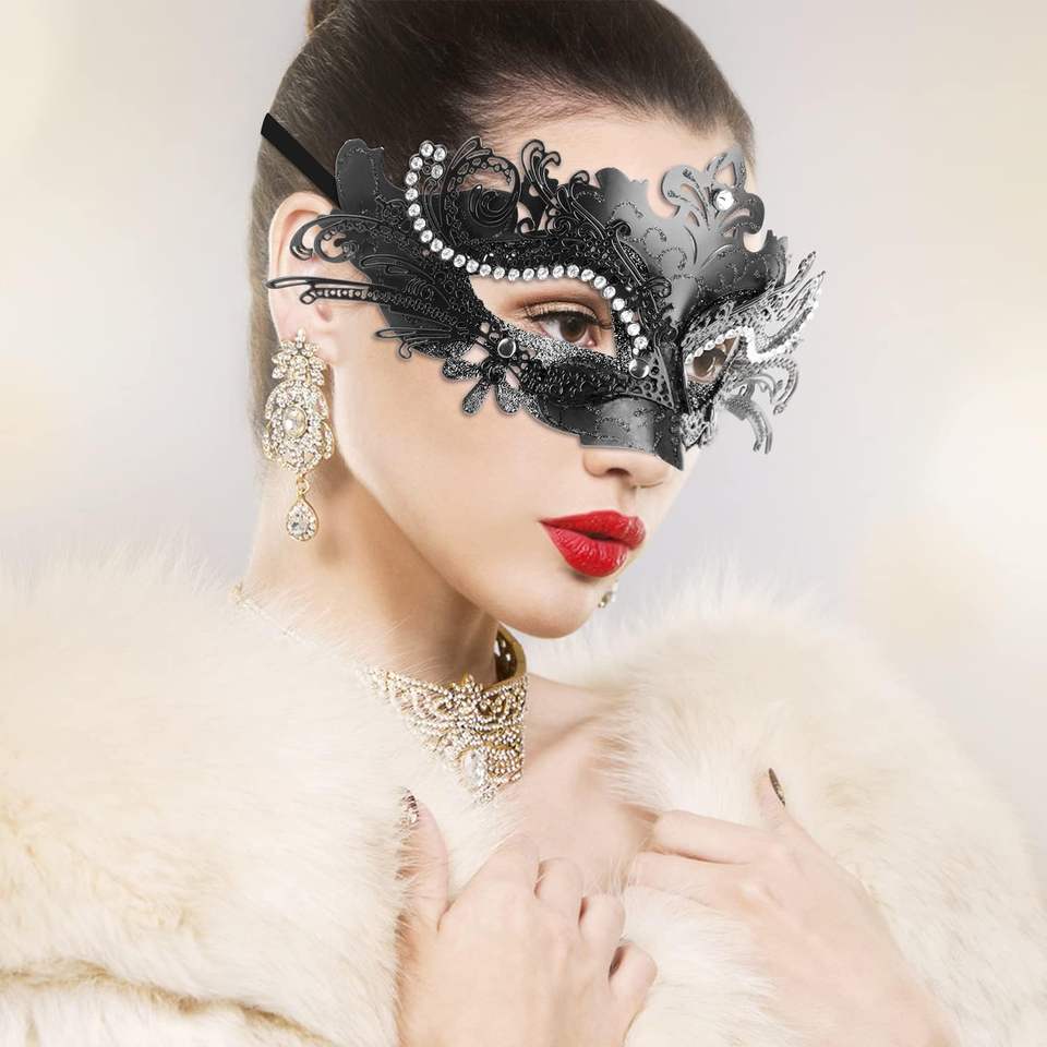หน้ากากแฟนซีสำหรับฮาโลวีนสำหรับผู้หญิงผู้ชายคู่รักหน้ากากพลาสติกคริสตัลสีดำสำหรับอุปกรณ์จัดปาร์ตี้