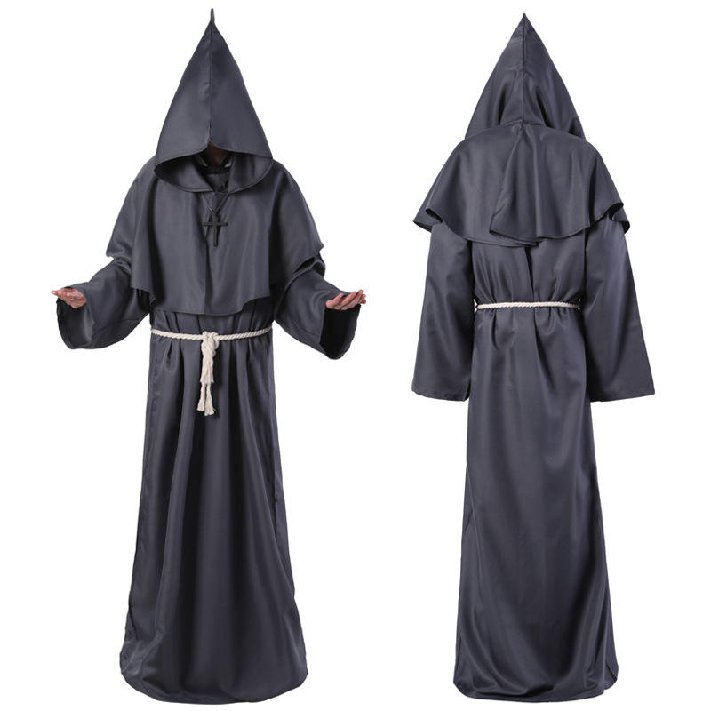 ชุดฮาโลวีนชุดผู้ใหญ่ monasticism ผ้าคลุมนักบวชแม่มดยุคกลางผ้าคลุมไหล่คอสเพลย์