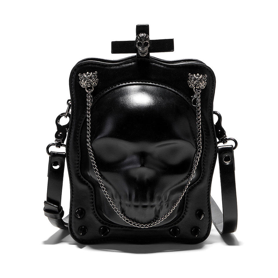 กระเป๋าสะพายข้างทรงสี่เหลี่ยมเล็ก ดีไซน์หัวกะโหลกสไตล์ดาร์คพรีปปี้ สำหรับฮาโลวีน วัสดุผ้าสักหลาด กันน้ำ ใส่ GPS ได้ แบบเปิดปิดง่าย สำหรับทุกเพศทุกวัย โดดเด่นไม่ซ้ำใคร