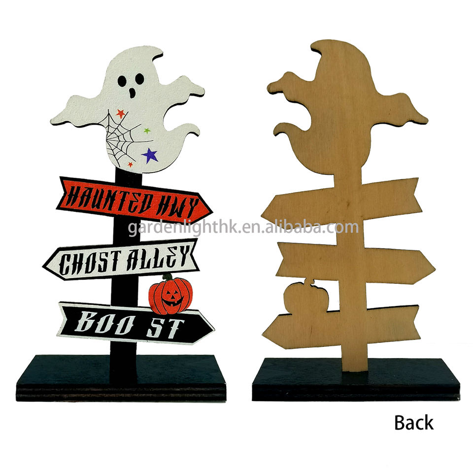 ป้ายตกแต่งโต๊ะทำงานลายไม้ฮาโลวีน - ป้ายถนนลายผีสิง 'Haunted Hwy/Ghost Alley/Boo St' (8x4x14 ซม.) สำหรับตกแต่งบ้าน สำนักงาน หรืองานปาร์ตี้