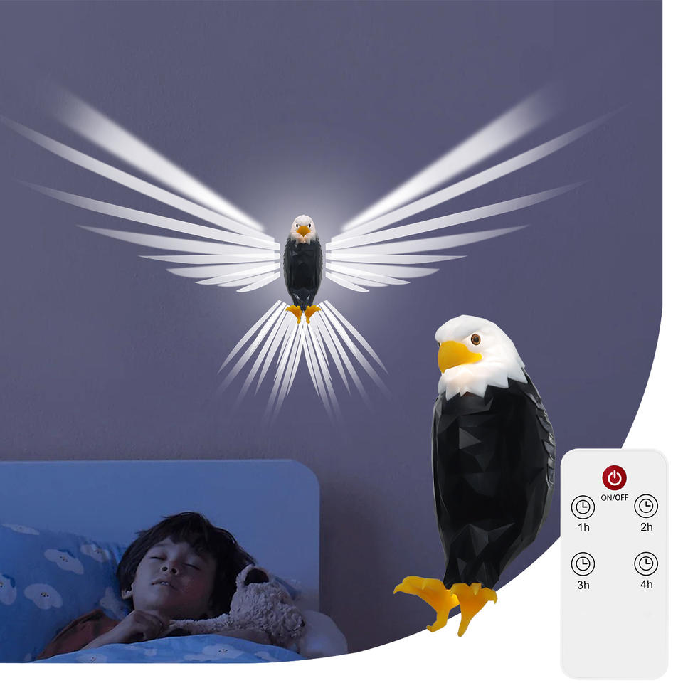 โคมไฟติดผนังรูปนกอินทรี 3 มิติ สำหรับฮาโลวีน ไฟ LED ฉายภาพเงาสัตว์ พร้อมรีโมทคอนโทรล สำหรับบันไดและทางเดิน