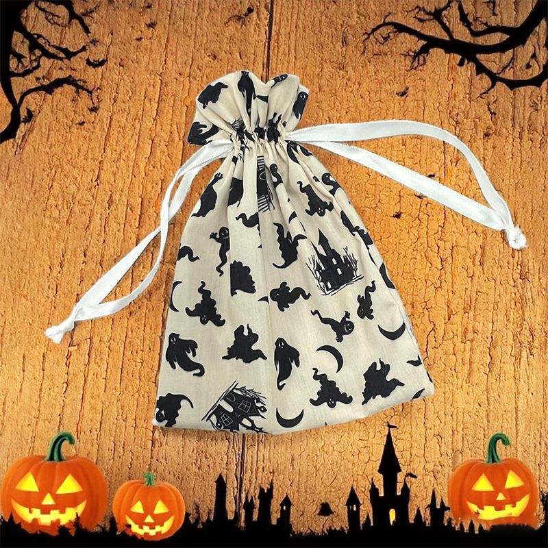 ถุงผ้าฝ้ายออร์แกนิคปักลายฮาโลวีน สำหรับใส่เครื่องประดับ สร้อยข้อมือ นาฬิกา แหวน ใช้สำหรับงานฝีมือและตกแต่ง