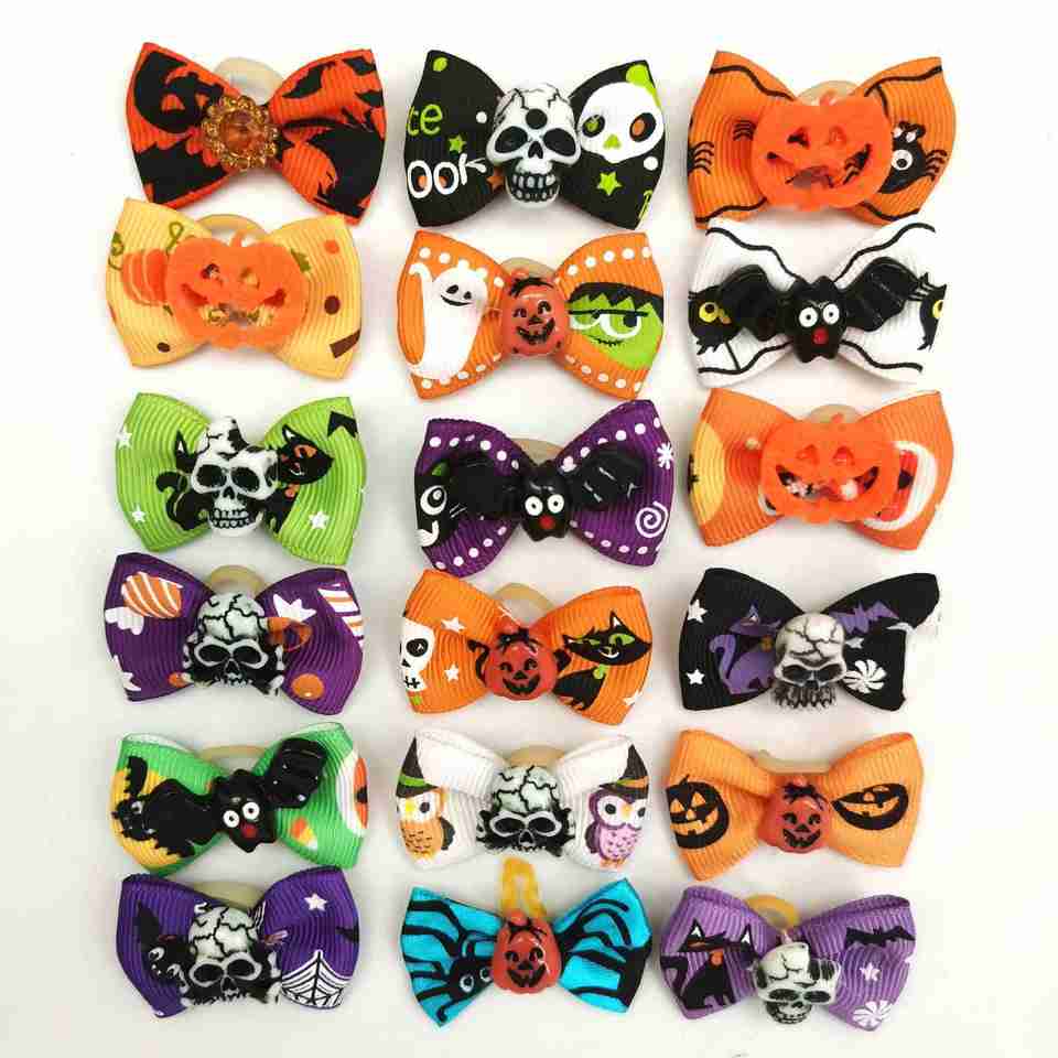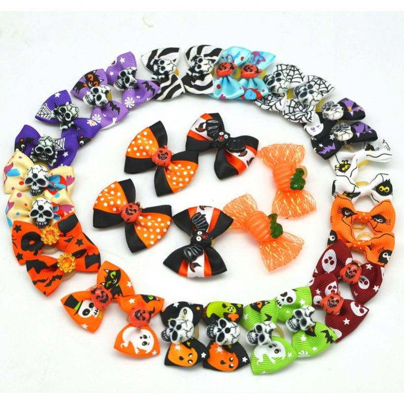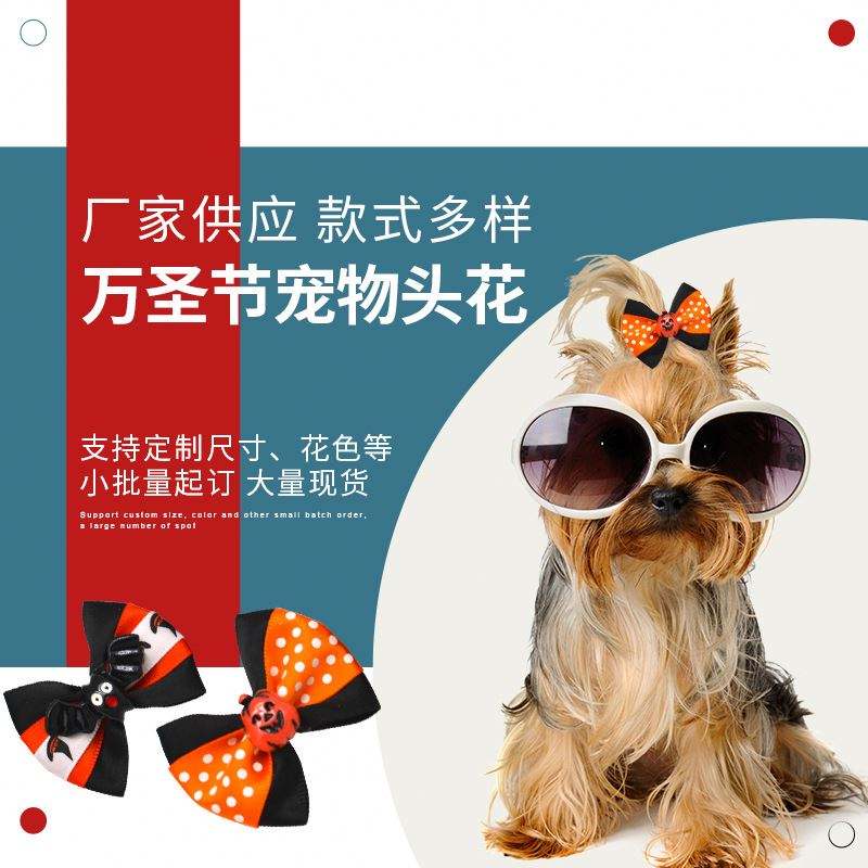 เครื่องประดับศีรษะสำหรับตกแต่งเทศกาลฮาโลวีนดอกไม้เชือกผูกโบว์แมวสุนัขแมวเครื่องประดับตกแต่งสำหรับสัตว์เลี้ยง