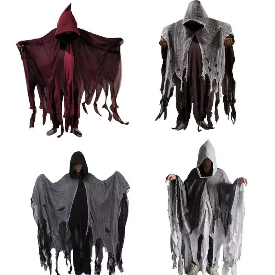 Halloween Grim Reaper Costume Men Scary Scythe Outfit Festival Death Cosplay Dress Up Evil Spirit Stage Performance Horror Cloak