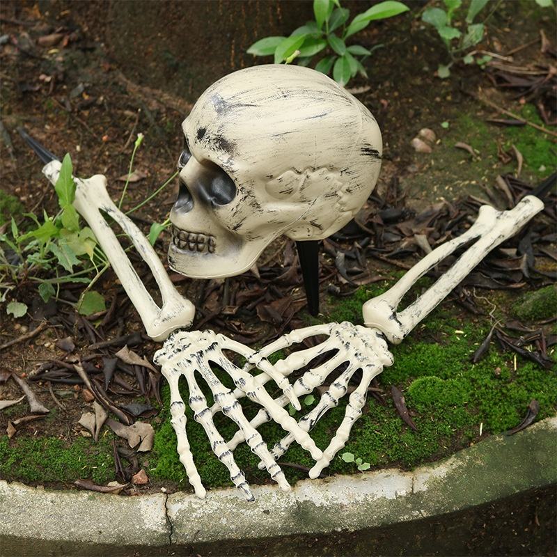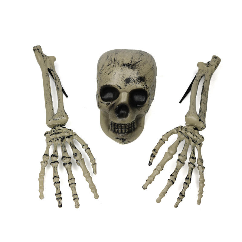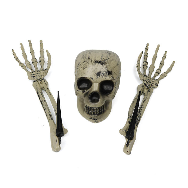 ชุดตกแต่งโครงกระดูกวันฮาโลวีนสยองขวัญสามชิ้นนำหัวกะโหลกที่น่ากลัวมาใส่หัวกรงเล็บ PP สำหรับตกแต่งบ้านผีสิง