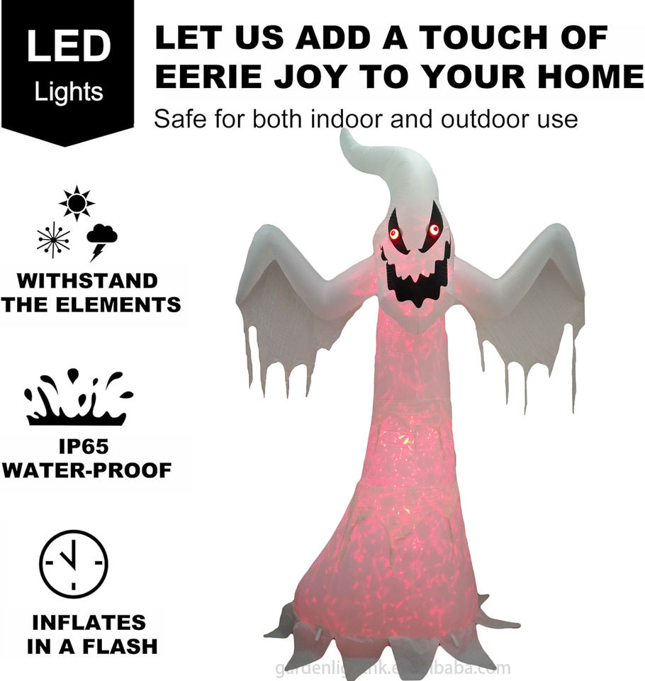 10FT เป่าลมรูปฮาโลวีนสีขาวเหมือนผี LED ดวงตาเคลื่อนไหวสีแดงแสงฉายภาพที่เป็นมิตรกับสิ่งแวดล้อมสำหรับบ้านผีสิง
