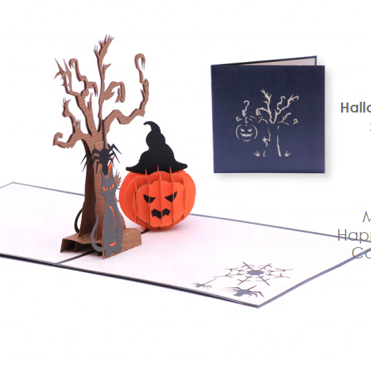 งานหัตถกรรมการ์ดป๊อปอัปตัดด้วยเลเซอร์สำหรับฮาโลวีนและการ์ดกระดาษศิลปะจากเวียดนาม