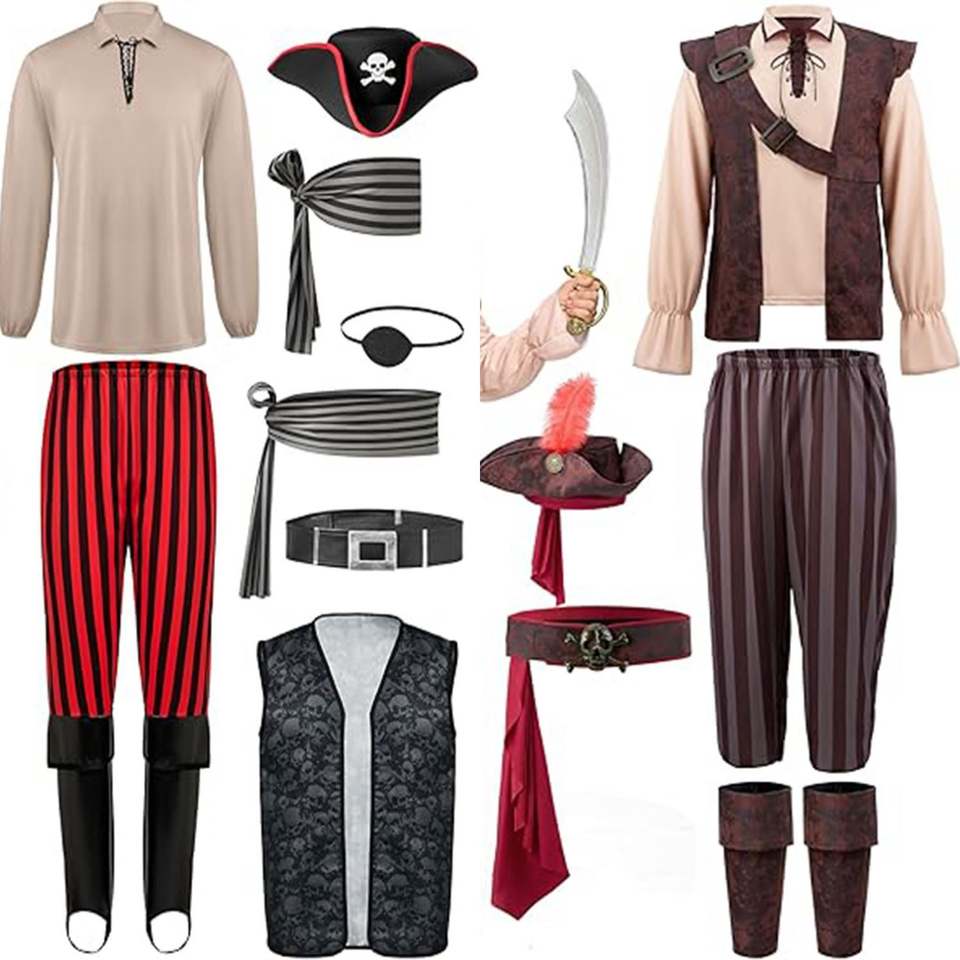 ชุดคอสเพลย์โจรสลัดสำหรับผู้ชายในวันฮาโลวีน ชุดงานรื่นเริง ชุดแสดงบนเวทีโจรสลัด