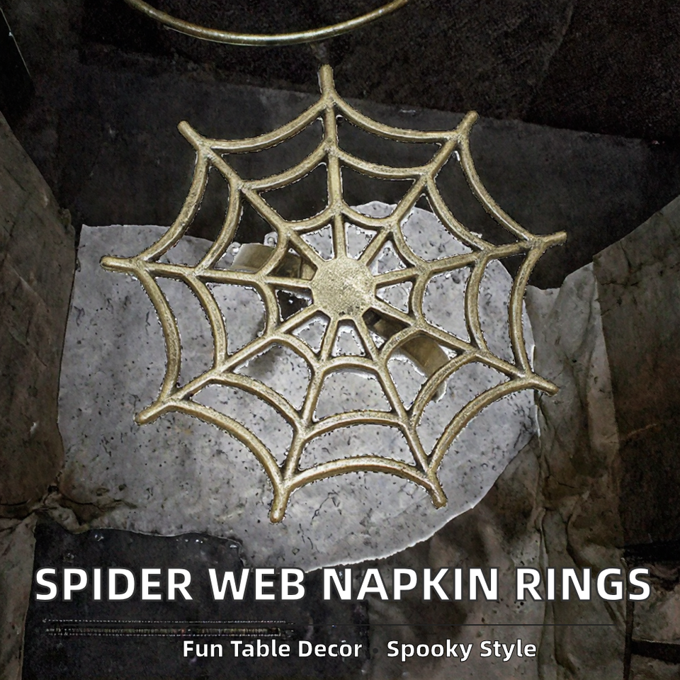 แหวนผ้าเช็ดปากโลหะสำหรับฮาโลวีน พร้อมห่วงลายใยแมงมุมแบบคลาสสิก ของตกแต่งงานเทศกาลสำหรับโต๊ะอาหาร
