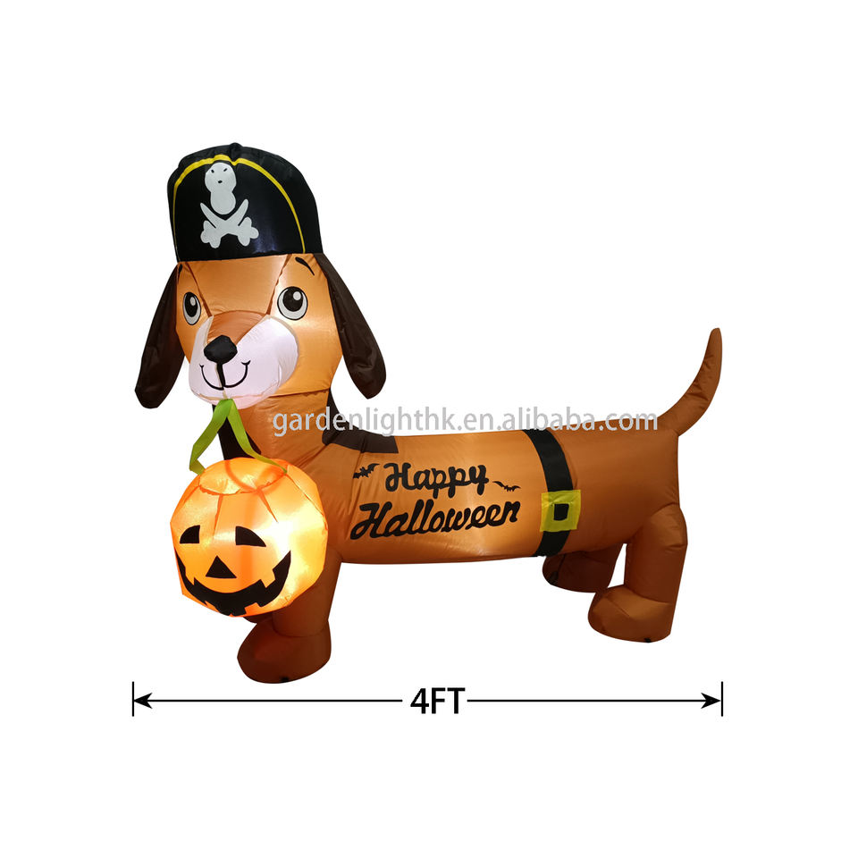 ตกแต่งกลางแจ้งวันฮาโลวีนสุนัขเป่าลม4FT สำหรับวันหยุดปาร์ตี้สวนตกแต่งวันฮาโลวีน