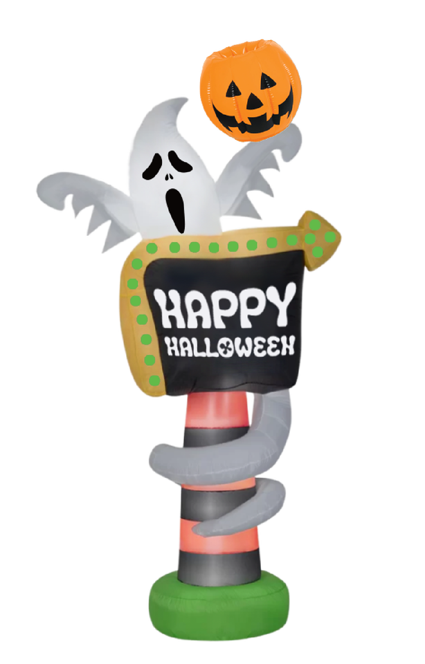 ของตกแต่งกลางแจ้งฮาโลวีนรูปลูกสุนัขโครงกระดูกและลานฟักทองแบบเป่าลมได้พร้อมไฟ LED ในตัว