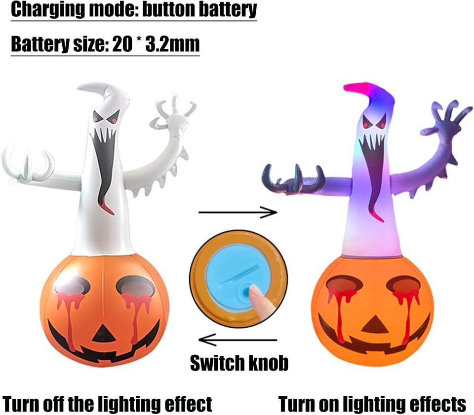ของตกแต่งฮาโลวีน ผีฟักทองพีวีซีเป่าลม มีไฟ น้ำหนักเบา พับเก็บได้
