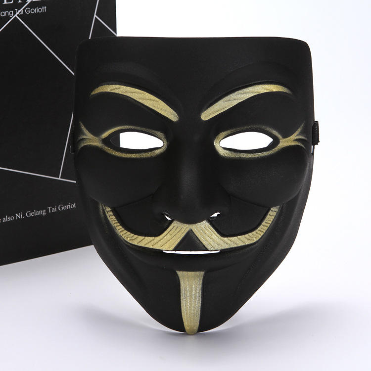 หน้ากาก PVC ฮาโลวีนรูปตัว V หน้ากากทีมศัตรูแฮ็กเกอร์หน้ากากเล่นบทบาทฮาโลวีน