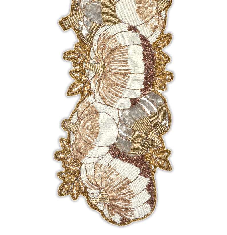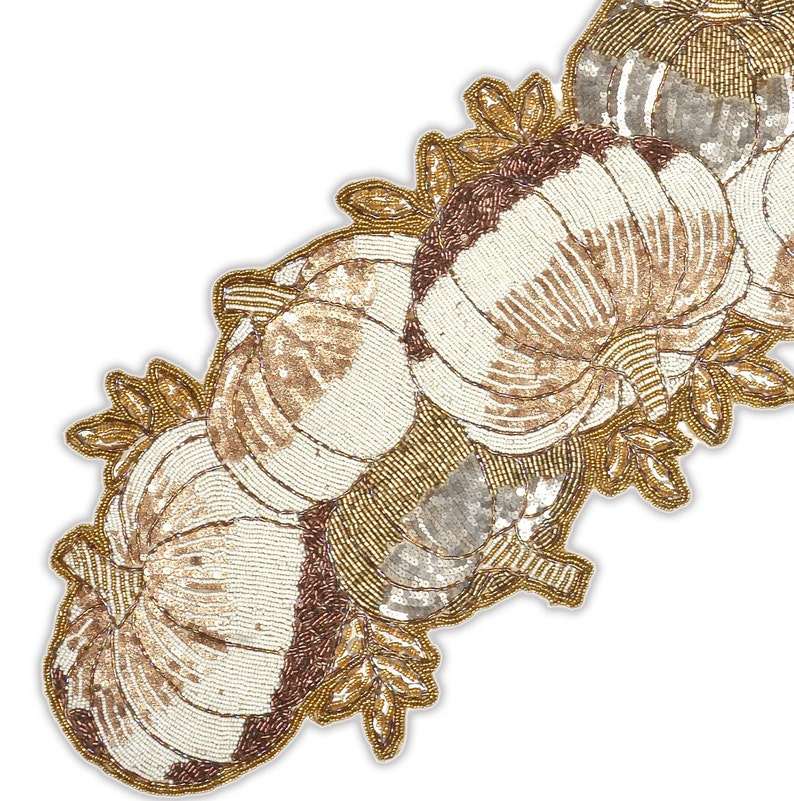 Handmade Beaded Halloween Pumpkin Table Runner Autumn Fall Decor for Dining Table Centerpiece