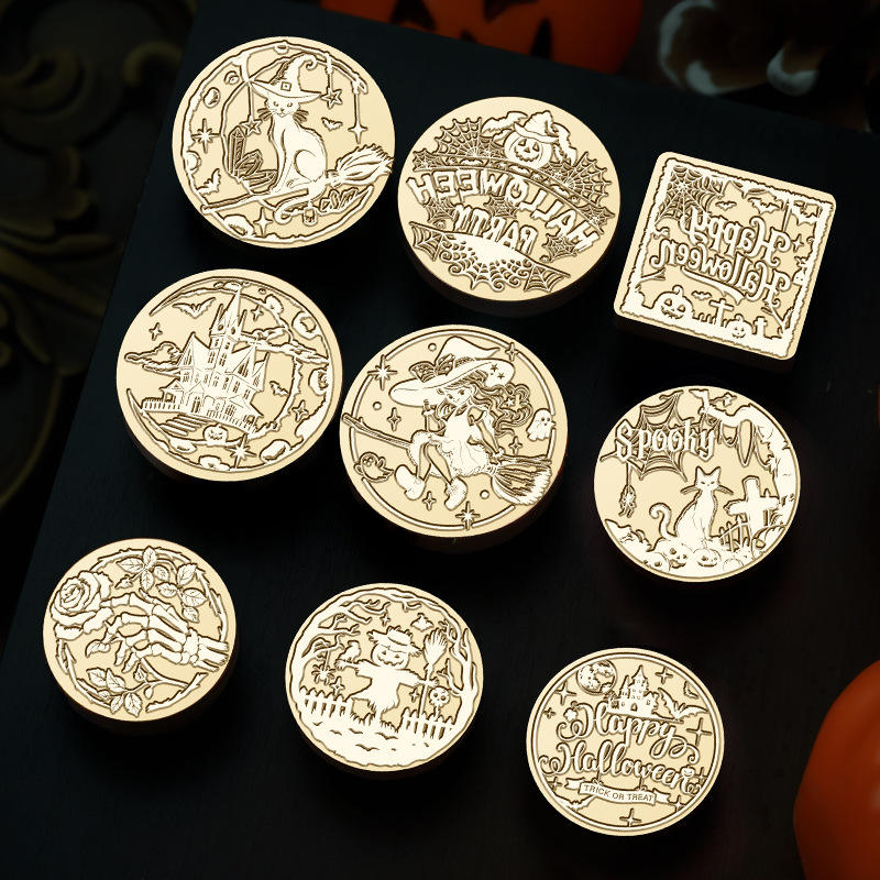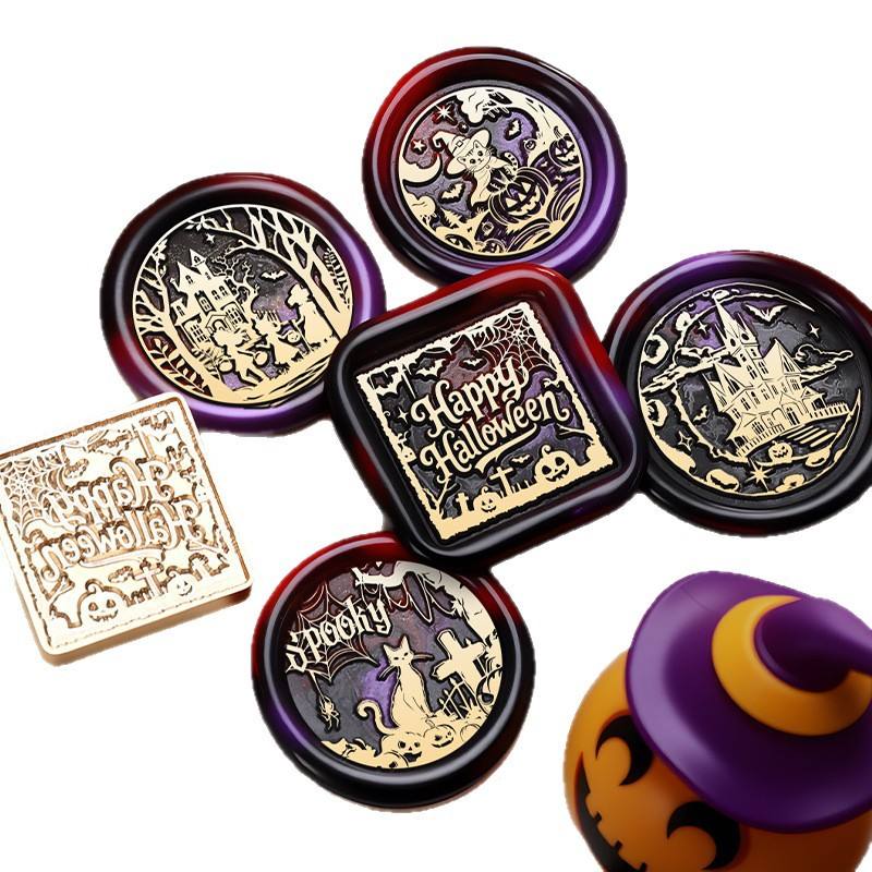 ชุดตราประทับขี้ผึ้งฮาโลวีน หัวตราทองเหลือง สำหรับตกแต่งสมุดบันทึกและซองจดหมาย ซีรีส์ใหม่ปี 2025
