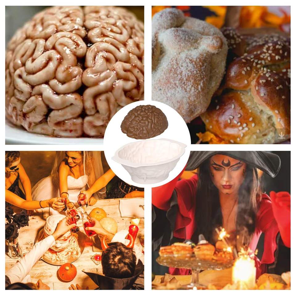 แม่พิมพ์ซิลิโคนรูปสมองสำหรับฮาโลวีน แม่พิมพ์อวัยวะมนุษย์เสมือนจริง สำหรับทำฟองดองท์ ลูกอม ช็อกโกแลต เยลลี่ หรือพุดดิ้ง