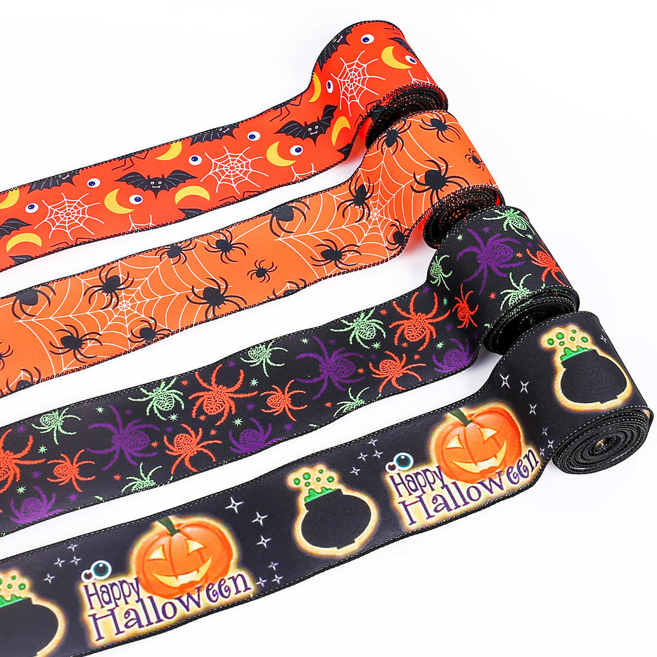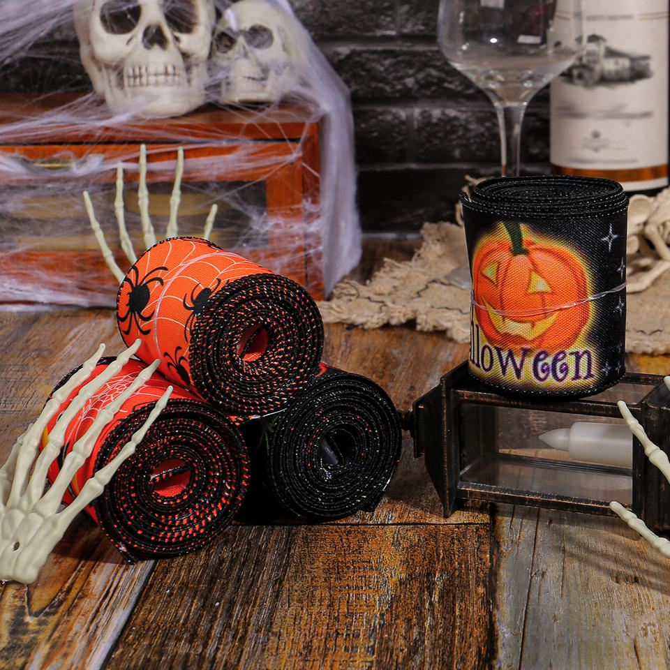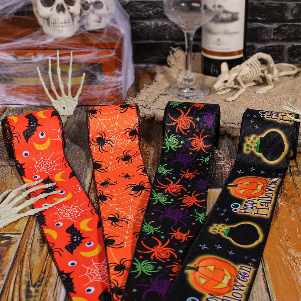 ริบบิ้นพิมพ์ลายแมงมุมและผีสำหรับฮาโลวีน แถบสีตกแต่งงานปาร์ตี้ DIY สุดสนุก
