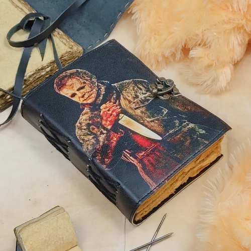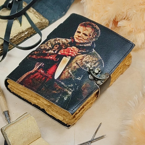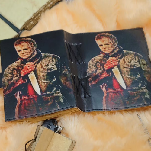 Halloween Theme Printed killer Handmade Leather hardcover Notebook spell Book of Shadows Michael Myers Horror Journal Gift