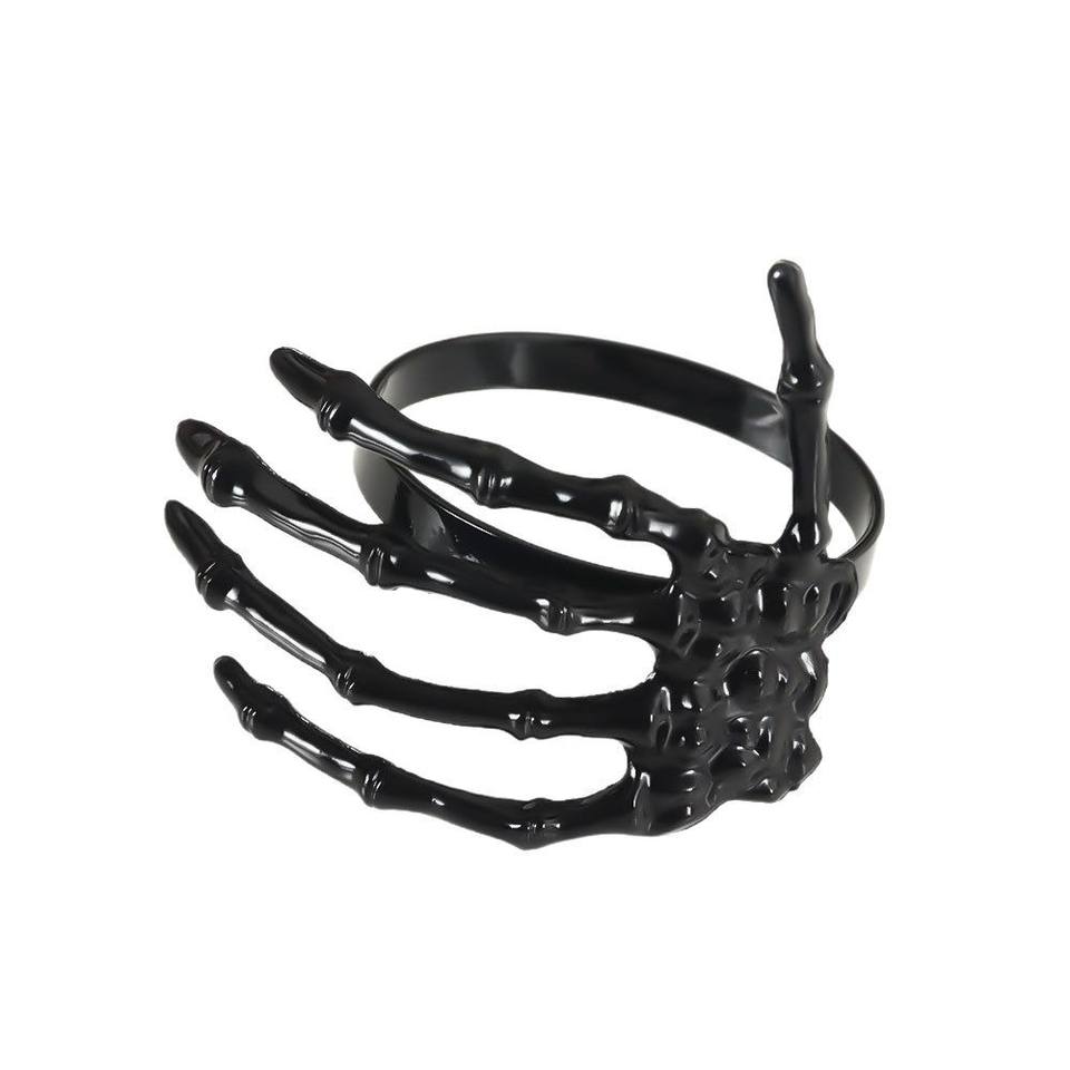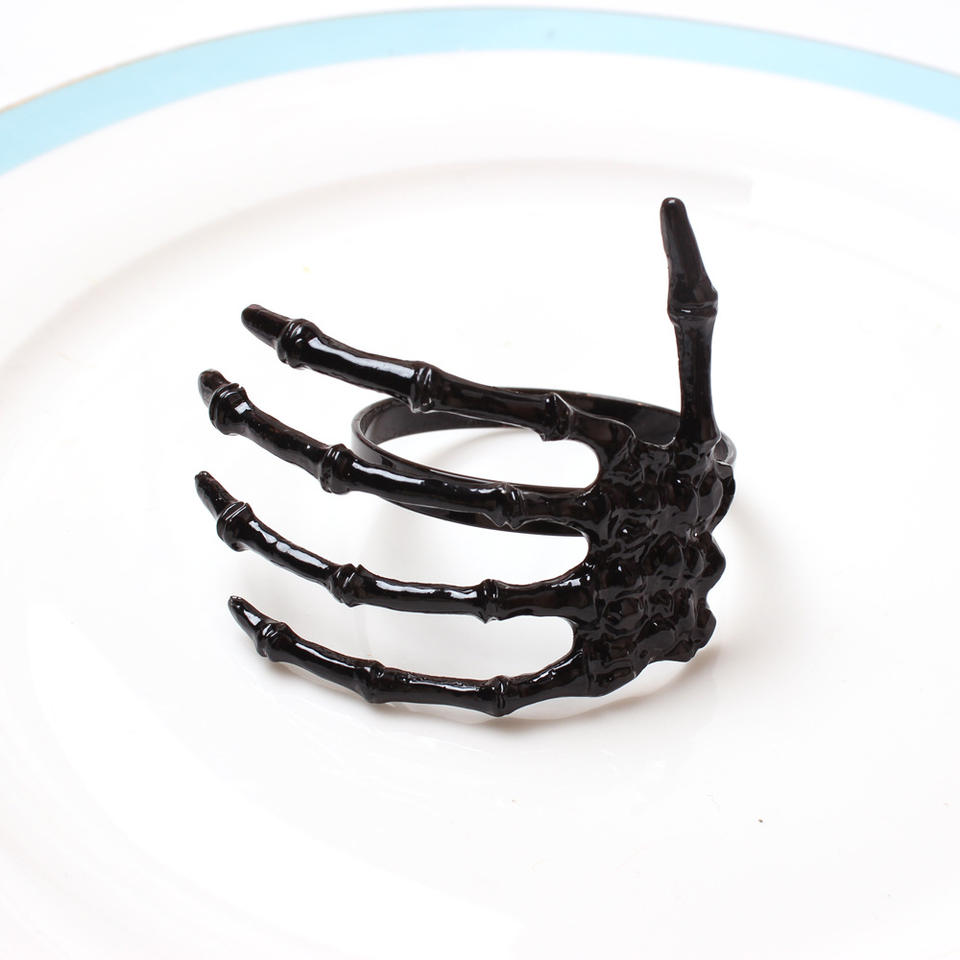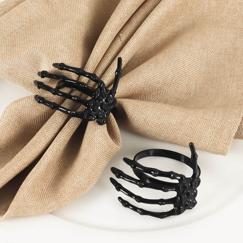 แหวนผ้าเช็ดมือรูปโครงกระดูกฮาโลวีนสีดำสำหรับจัดเลี้ยงในโรงแรมจัดเลี้ยงตกแต่งโต๊ะ