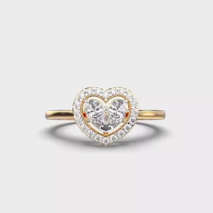 แหวนเพชร14K โตในแล็บ1.50ฮาโลซึ่งเป็นแหวนทองโมอิสซาไนท์แท้ตัดรูปหัวใจของขวัญสำหรับผู้หญิง