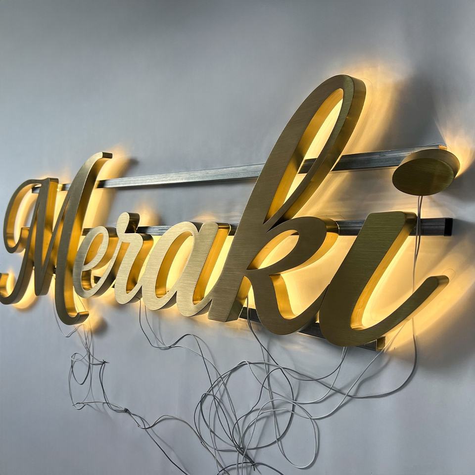 ป้ายไฟ Halo แบบมีไฟ LED สีขาวอบอุ่น ตัวอักษรโลหะเรืองแสง สำหรับฉากหลังงานแต่งงาน ร้านสปา ร้านค้าแบรนด์หรู