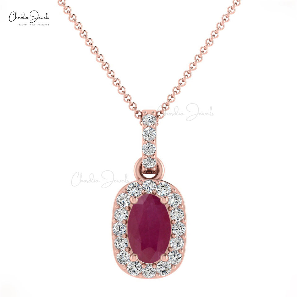 รัศมีรูปไข่14พันสีขาวทองจี้ทับทิมธรรมชาติและเพชรได้รับการรับรองเครื่องประดับสวมใส่ทุกวันสำหรับผู้หญิงสำหรับขาย