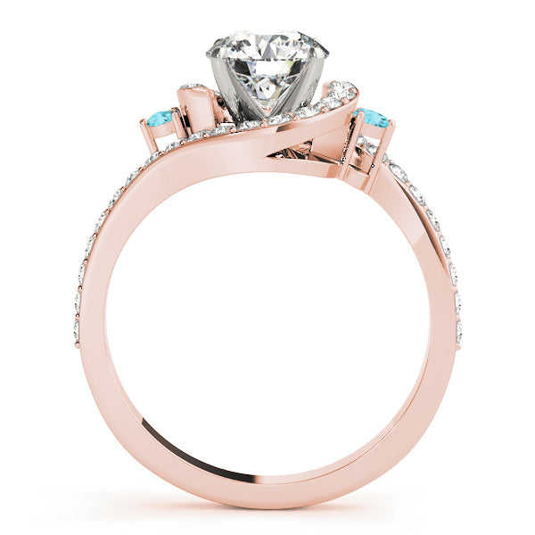แหวนหมั้นฮาโล สวีร์ล 0.48 กะรัต ประดับอะความารีนและเพชร ตัวเรือนทองคำโรสโกลด์ 14k