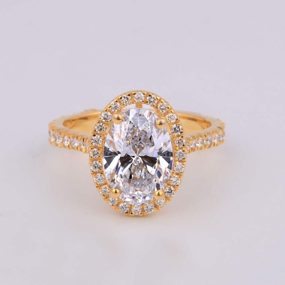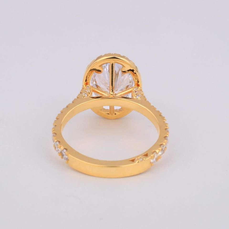 ชุดรัศมีวงแหวนเพชรที่โตในห้องปฏิบัติการทรงรี14 KT สีเหลืองทอง VVS เพชรใส