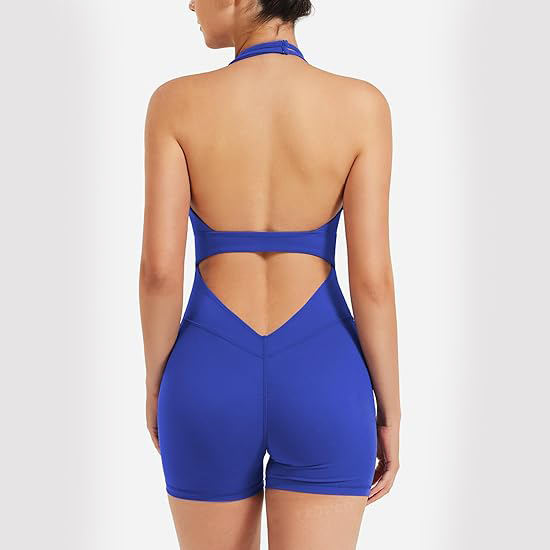 จั๊มสูทโยคะแบบผูกคอสำหรับผู้หญิง ชุดบอดี้สูทออกกำลังกายไร้รอยต่อ เปิดหลัง เอวสูง ผ้ายืดสแปนเด็กซ์ โพลีเอสเตอร์ ดีไซน์โชว์หลัง ชุดกีฬา