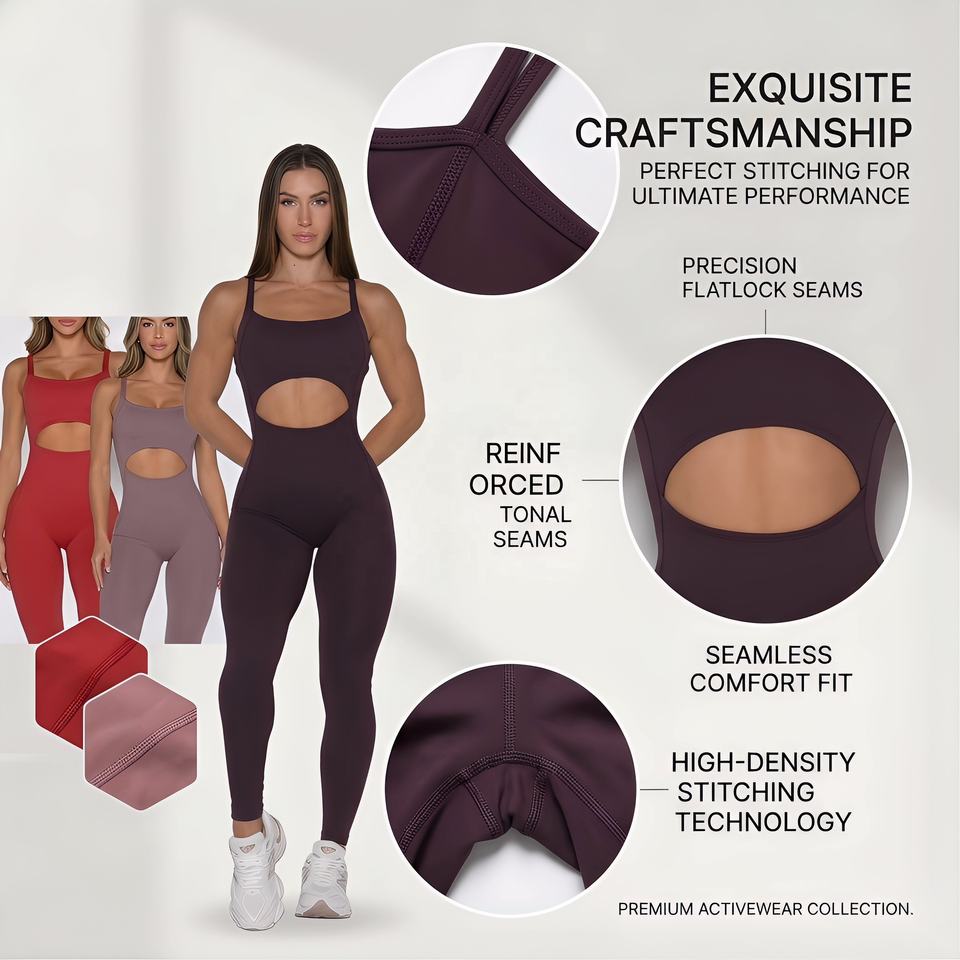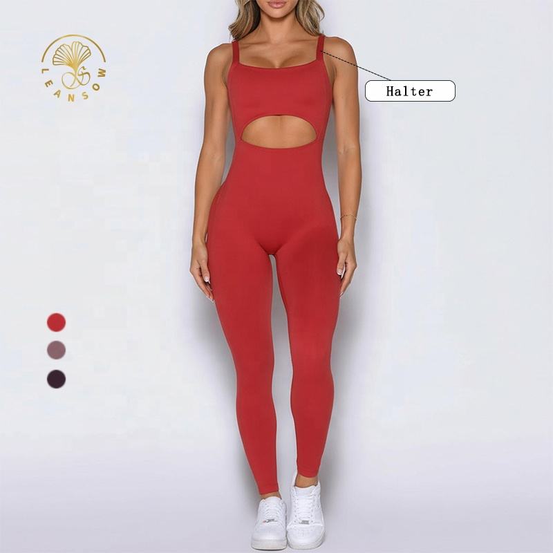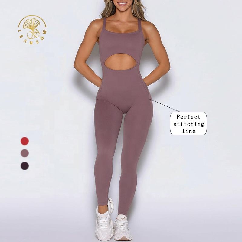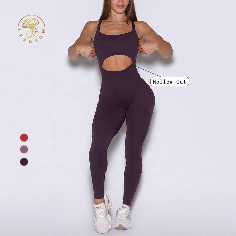 ชุดรอมเปอร์ออกกำลังกายแบบยืดได้สำหรับผู้หญิง ดีไซน์เว้าช่วงตัว แต่งลายเฉพาะตัว สวยหรูหรา สไตล์คอมบิเนชั่นสปอร์ต จั๊มสูท