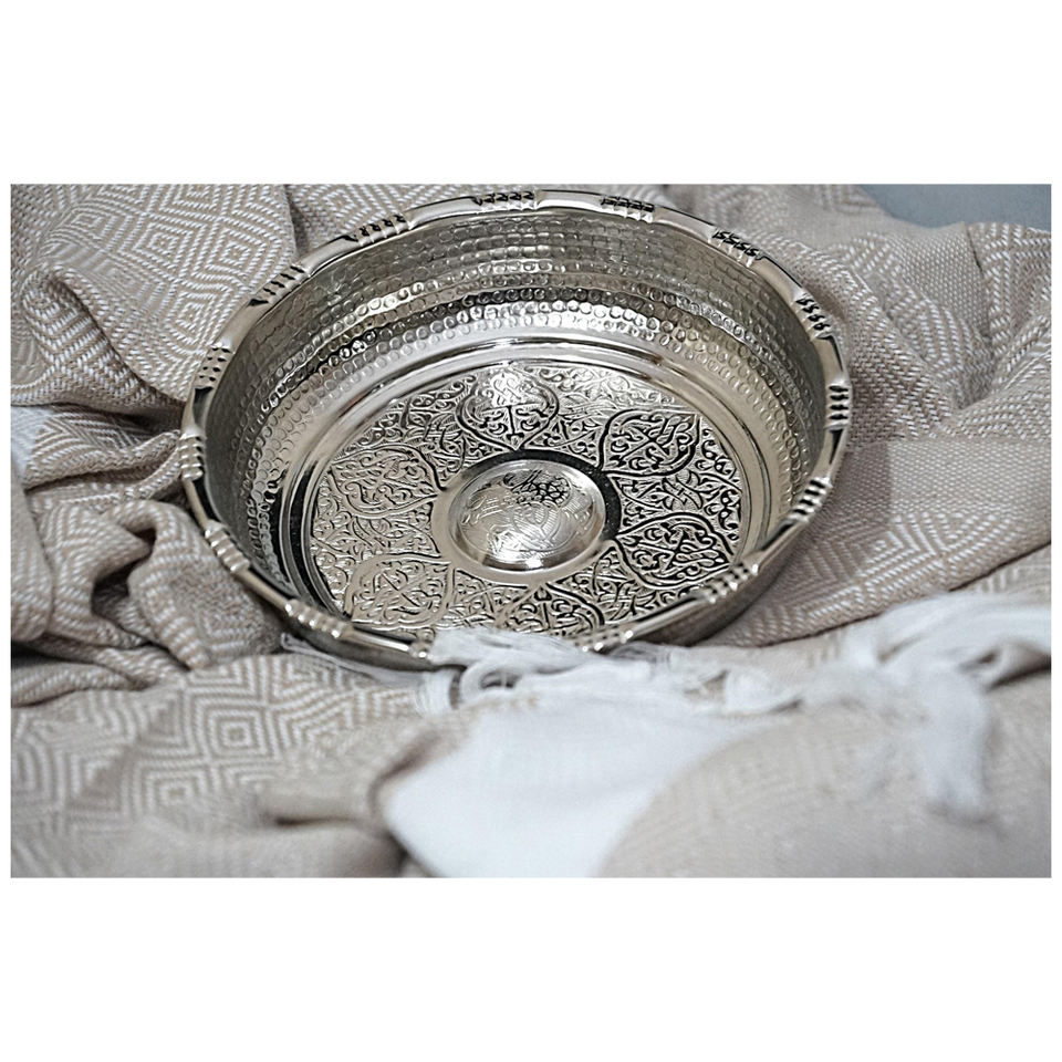 ชามฮัมมัมคุณภาพดีที่สุด ผลิตจากทองแดงและชุบโครเมียม แบบดั้งเดิมจากผู้ผลิตฮัมมัมตุรกี ชามสำหรับรดน้ำในห้องฮัมมัม