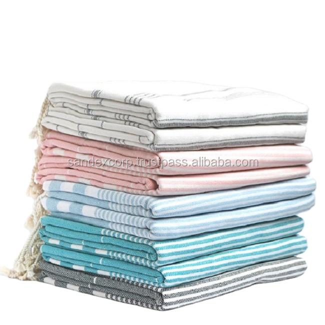 ผ้าขนหนู Hammam ผ้าเช็ดตัวฝ้าย100% นุ่มสบายสำหรับผู้หญิงหลายสีผู้ผลิตในอินเดีย