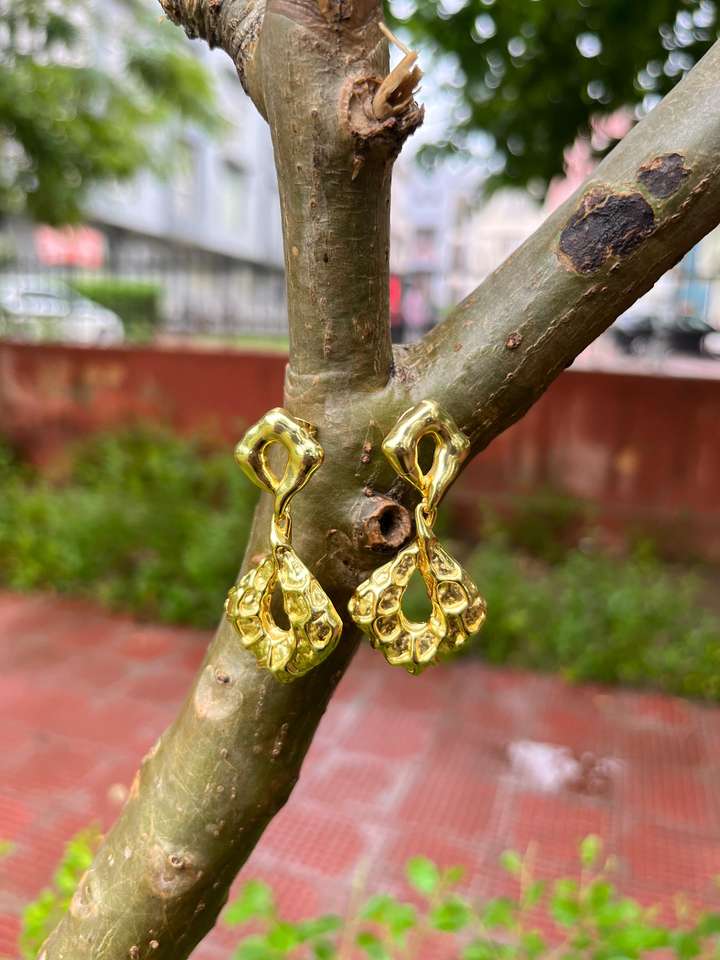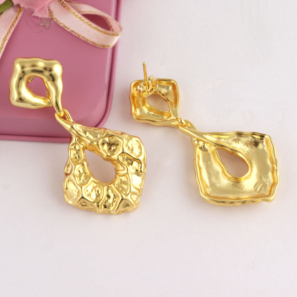 ต่างหูห้อยรูปทรงเรขาคณิตชุบทอง 18k แบบตอกลาย รูปทรงเปลือกเต่าแบบไม่สมมาตร ทำจากทองเหลืองแท้ เครื่องประดับสำหรับผู้หญิง ขนาด 51 มม. แบบติดหู