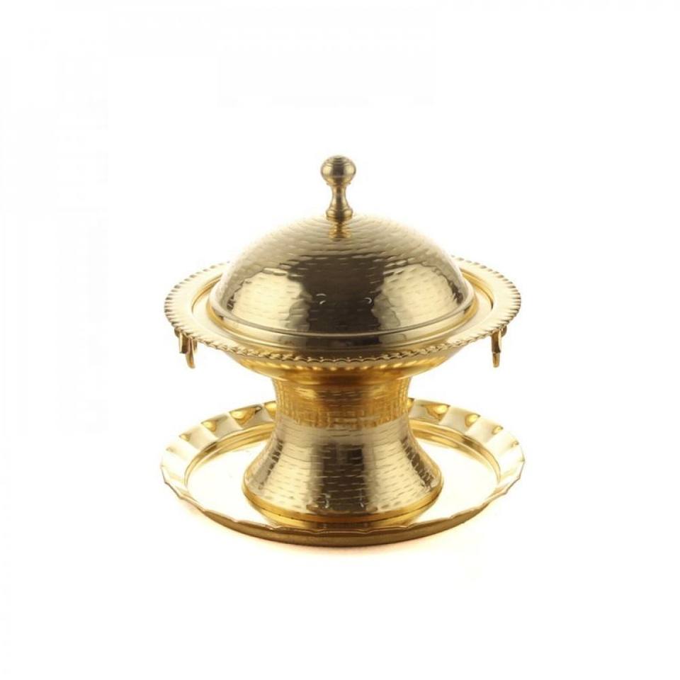 ถาดทองเหลืองตีขึ้นรูปทรงกลมขัดเงาสไตล์เอเชียเซน ปรับแต่งได้ ปลอดสาร BPA สำหรับงานปาร์ตี้