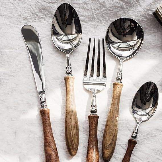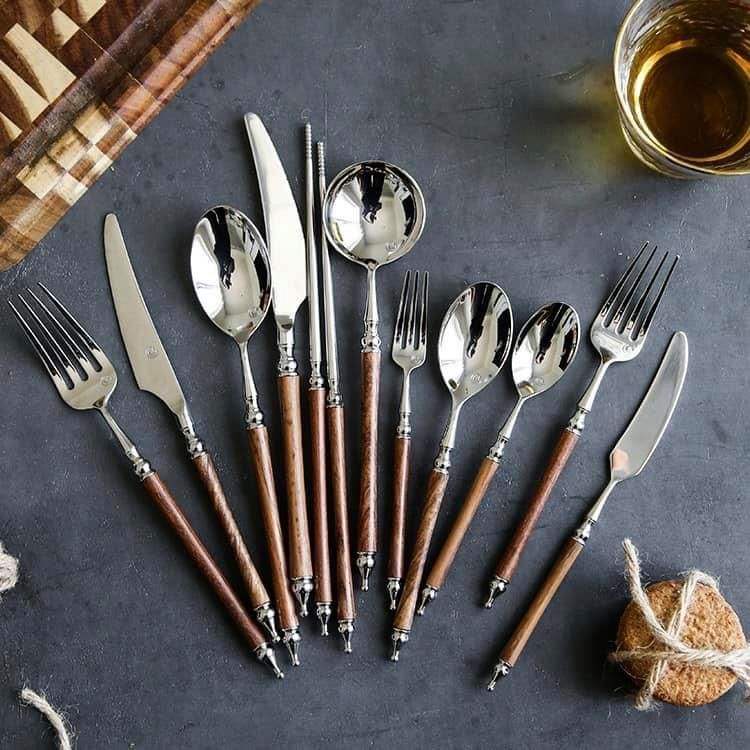 ชุดช้อนขนม4ชิ้นทำจากทองแดงและทองเหลืองทำจากสเตนเลสสตีลที่มีการตกแต่งแบบโบราณ