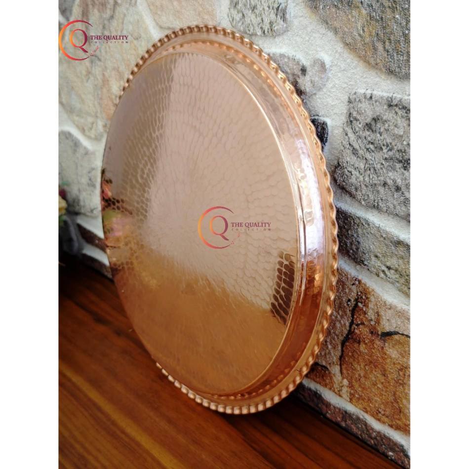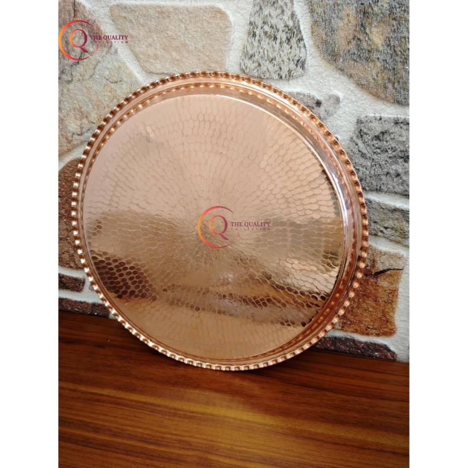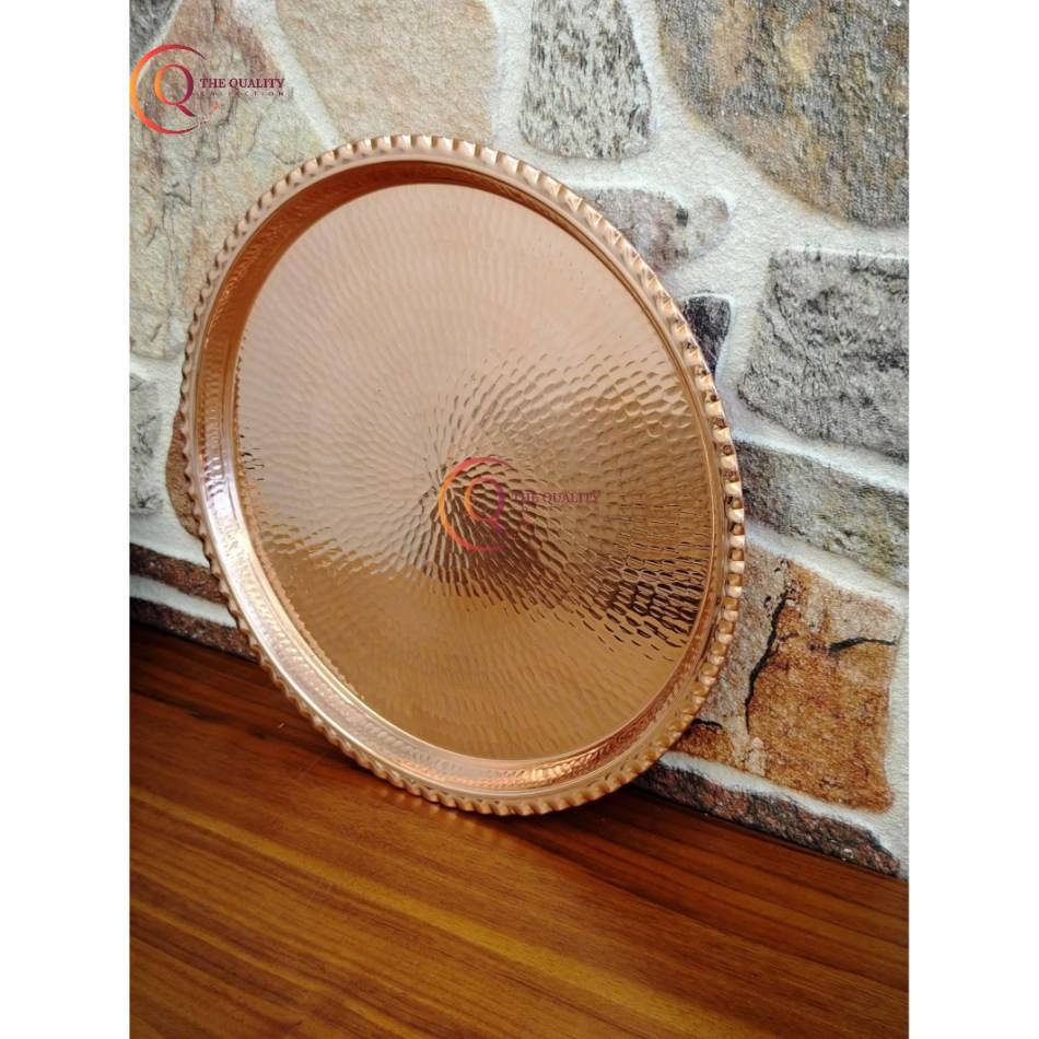 ถาดรองกลมทำจากทองแดงทำจากไม้ตีเครื่องครัวถาดเสิร์ฟขนมอบสำหรับงานเลี้ยงวันเกิด