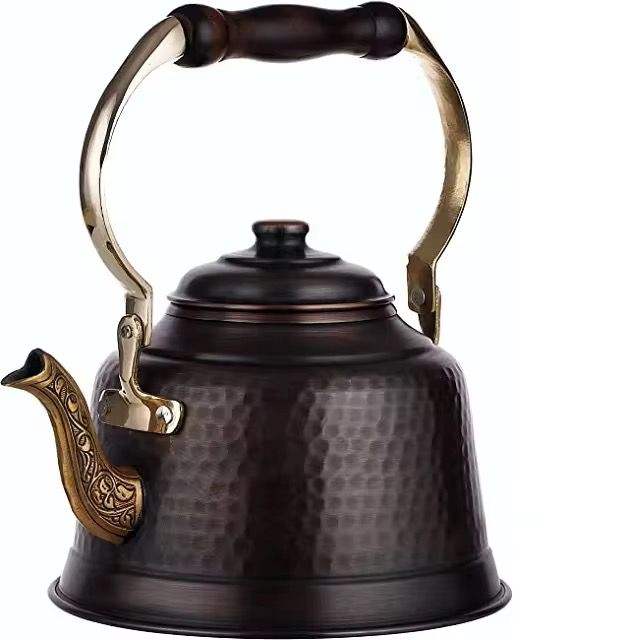 กาต้มน้ำทองแดงตีลาย ด้ามไม้ วินเทจ กาต้มน้ำโลหะ ใช้กับเตาได้ ทนทาน ของขวัญสำหรับครัว