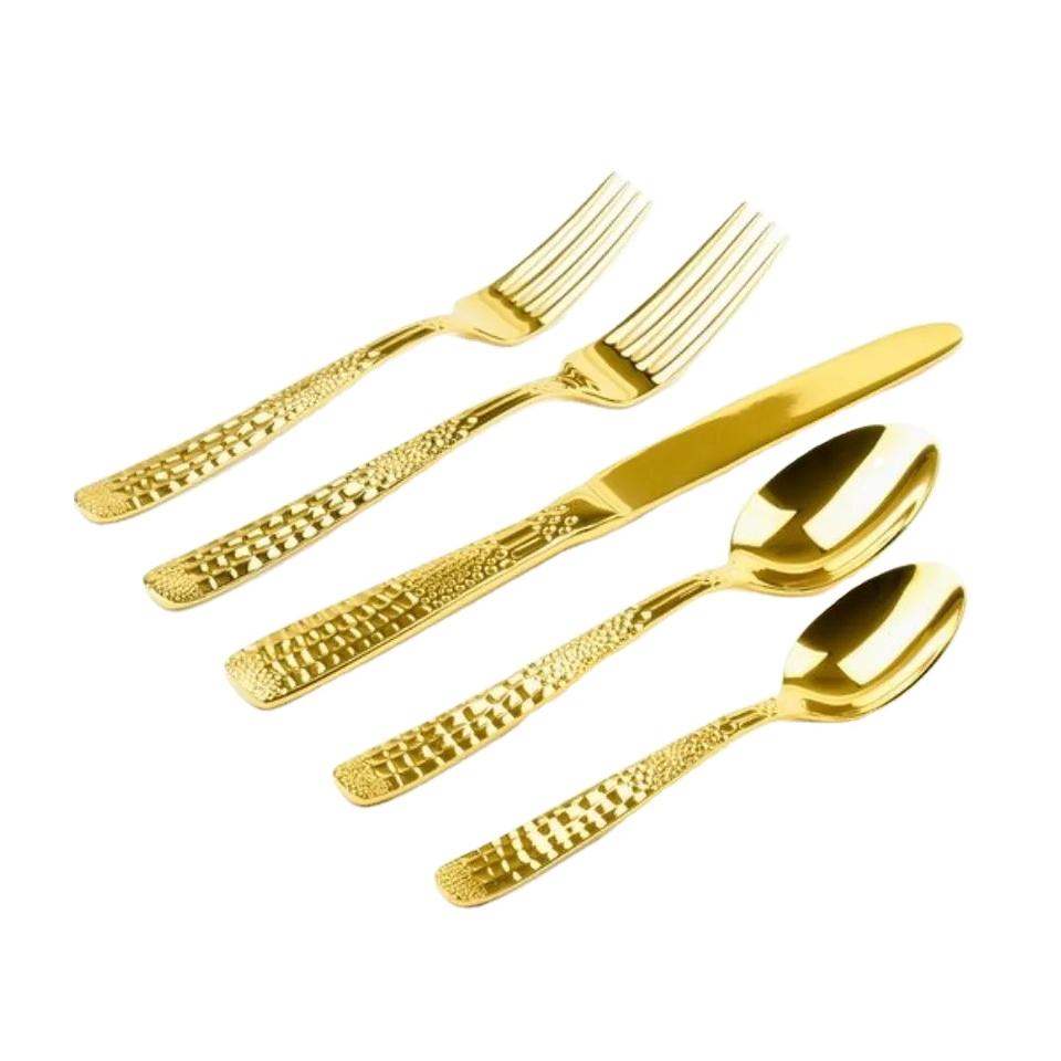 ชุดเครื่องใช้บนโต๊ะอาหารด้ามค้อนชุบทองชุดเครื่องใช้บนโต๊ะอาหารสแตนเลสสำหรับโรงแรมคาเฟ่ร้านอาหาร