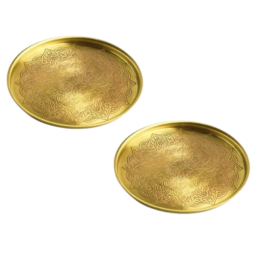 ที่รองแก้วโลหะสำหรับตกแต่งโต๊ะเครื่องครัวเคลือบทองทำจากไม้และหินสีทอง