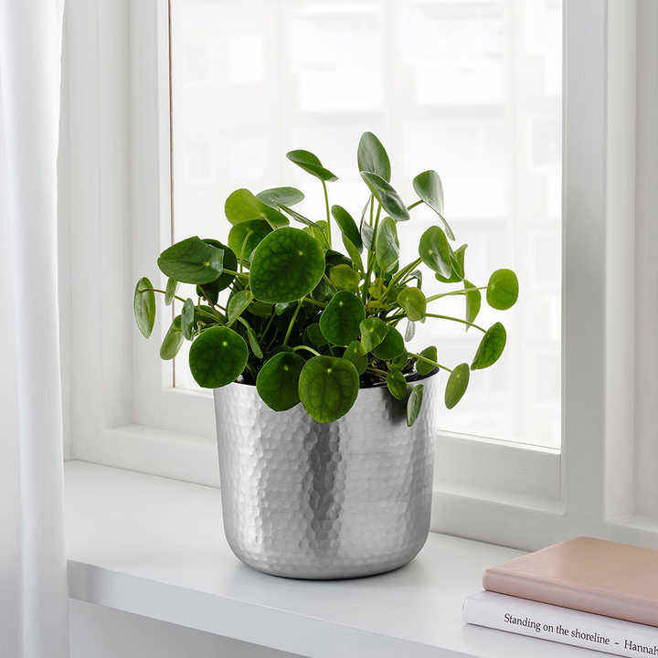 กระถางดอกไม้โลหะพร้อมกระจกสีเงินแบบทุบเหมาะสำหรับงานแต่งงานในบ้านและของตกแต่งที่หรูหรา