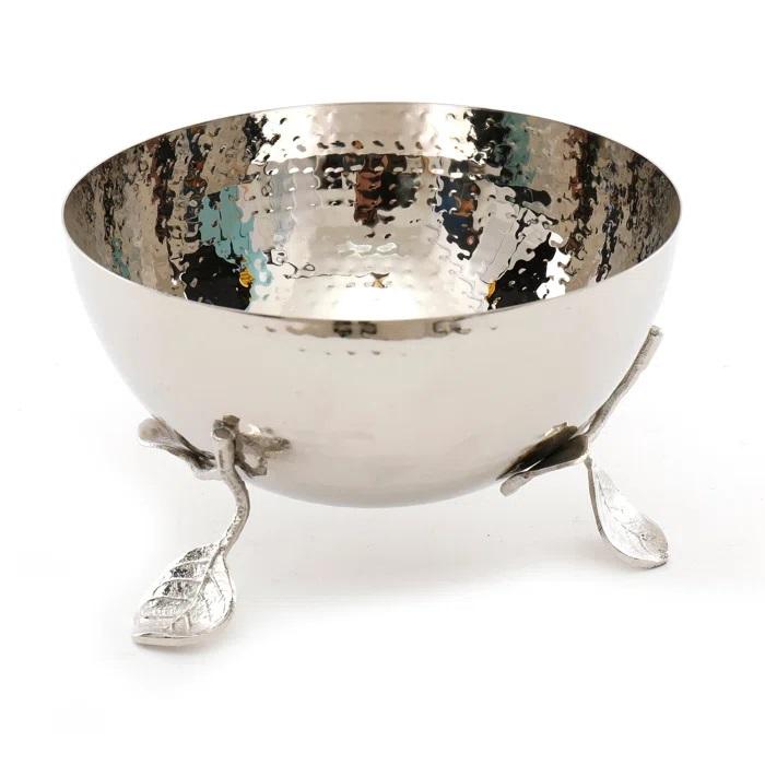 ชามอลูมิเนียมสำหรับใส่แสดงอาหารและผลไม้ดีไซน์ใหม่พร้อมขาอบไอน้ำใบสำหรับตกแต่งโต๊ะดีไซน์แบบทุบทำจากโลหะมีสไตล์