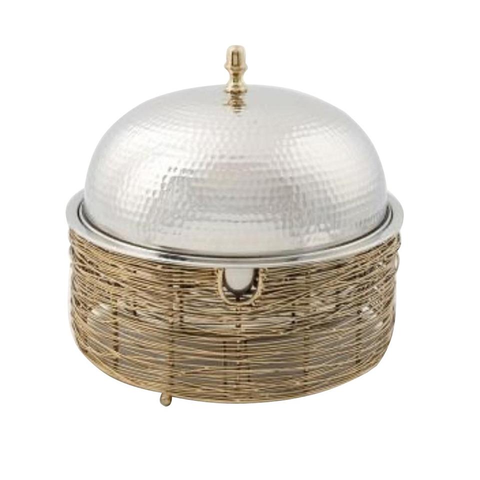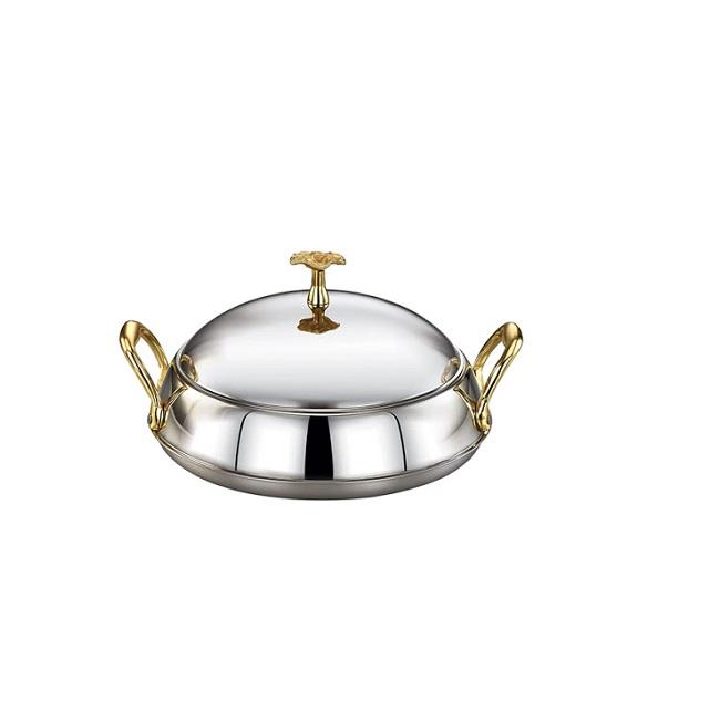 หม้อสุกี้เงินชุบลายตอก งานฝีมือ พร้อมหูจับสีทอง สำหรับงานวันเกิดและงานฉลองครบรอบ