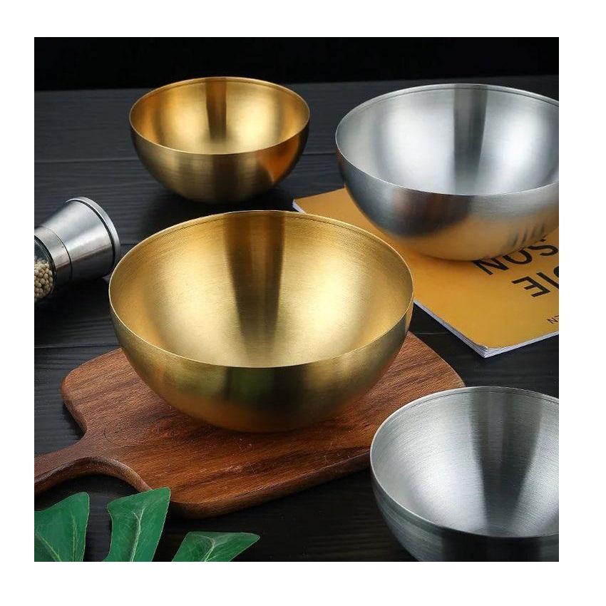 ชามสลัดสแตนเลสสตีลลายตอกสีทองงาช้าง ชามใส่อาหารทำมือสำหรับสลัด ซุป และผลไม้